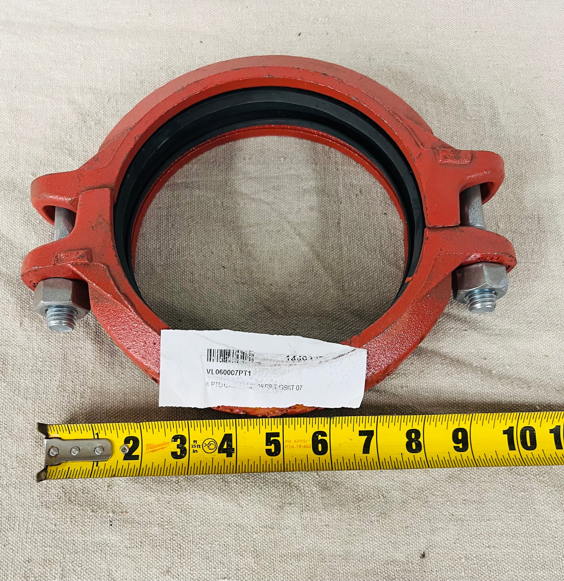 This 6-inch rigid grooved coupling (VL060007PT1) is designed for joining 6" grooved pipe in fire protection, HVAC, and industrial mechanical piping systems. Made from durable painted ductile iron, this coupling provides a strong, vibration-resistant, leak-tight connection.