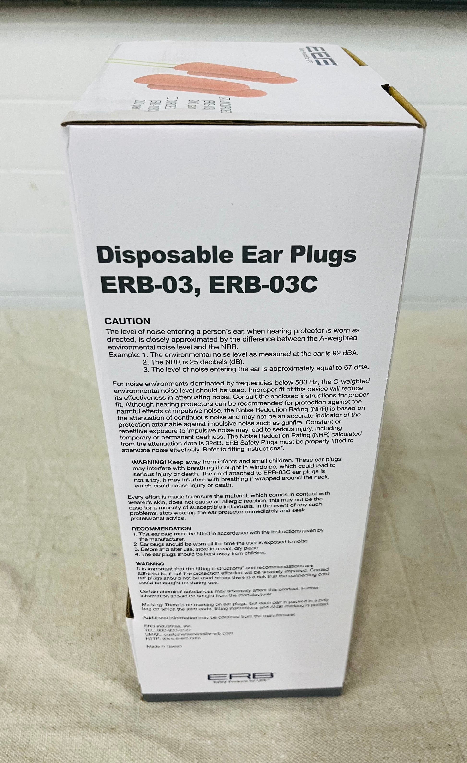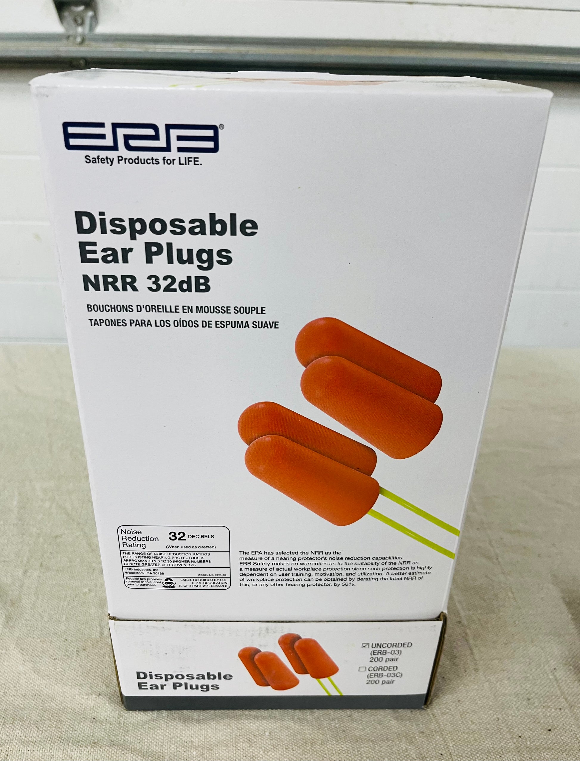ERB Safety Disposable Ear Plugs NRR 32dB – 200 Pair Box (ERB-03)
